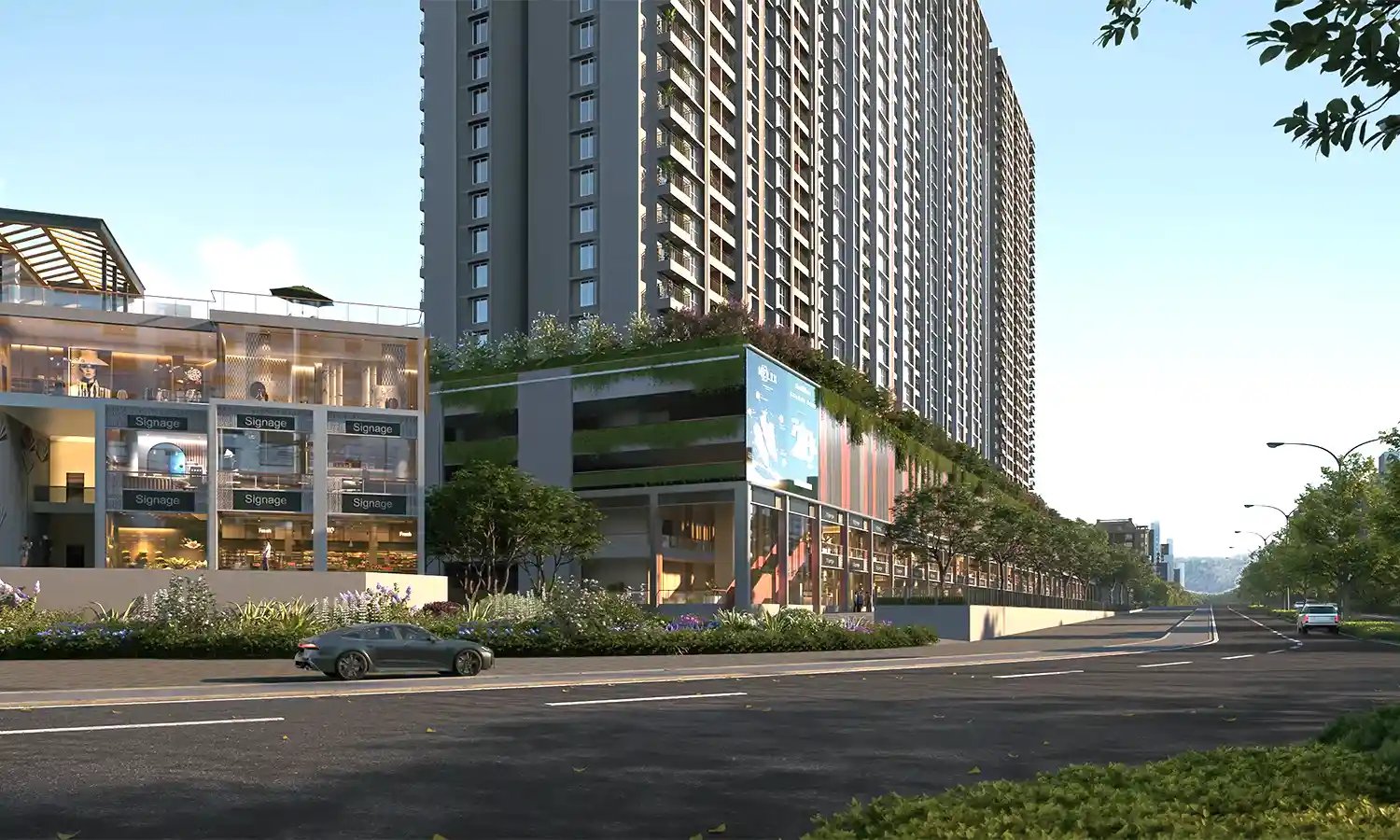 Godrej Evergreen Square is an exquisite residential landmark in Hinjewadi Phase 3, Pune. The seven elegant skyscrapers comprise 2 BHK and 3 BHK luxury residences with large balconies. Your homes overlook the scenic views of the city skyline and surrounding greenery. These homes are equipped with a video door phone and the finest features like branded sanitary fittings, quality marble flooring, etc. This community also comprises a 1 lakh sq. ft. retail plaza, offering around 60 lavish retail outlets. The 4-acre, beautifully designed landscape is based on New York-inspired extensive greenery. It also includes a 0.5-acre serene forest trail. It has 450+ trees and a range of curated indulgences that includes a 27,000 sq. ft. clubhouse, and more. The booming location of Hinjewadi Phase 3 is equipped with many renowned educational, retail, medical, commercial, and leisure options. Mumbai Pune Expressway and Pune Bangalore Highway are easily accessible from here. The upcoming Megapolis metro station is within walking distance. Pune International Airport is around an hour’s drive from here. So, lead a thoughtful life in the vibrant spaces by Godrej Evergreen Square in Hinjewadi Phase 3, Pune.